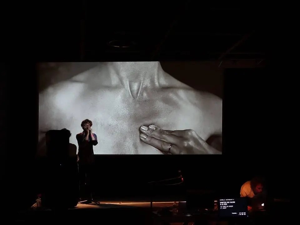 Les pièces et les laboratoires qui lui sont associés, sont conçues comme un entraînement pour rester vivant. L’homme / l’artiste, mis en situation de répondre à des demandes, se confronte à lui-même, au groupe et à la machine. La volonté d’accepter ou de résister est au coeur de l’expérience, tout comme les notions de métamorphose et de dépassement.