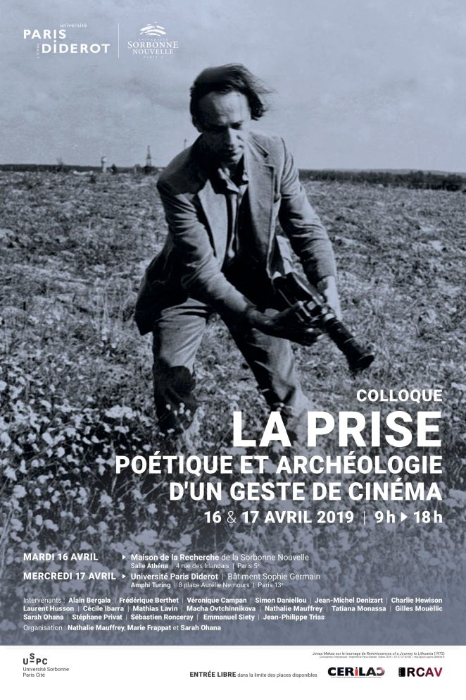 Communication du 16 avril 2019, dans le cadre du colloque « La Prise: poétique et archéologie d’un geste de cinéma » Centre d’Études et de Recherches Interdisciplinaires en Lettres Arts Cinéma (Cérilac)