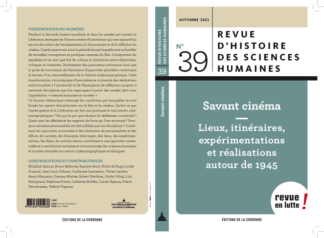 Revue d’histoire des sciences humaines n° 39, « Savant cinéma. Lieux, itinéraires, expérimentations et réalisations autour de 1945 »